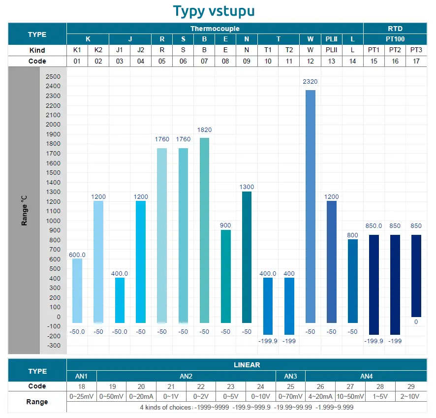 Typ vstupu a rozsah: 4-20 mA / 0-1 V / 0-10 V